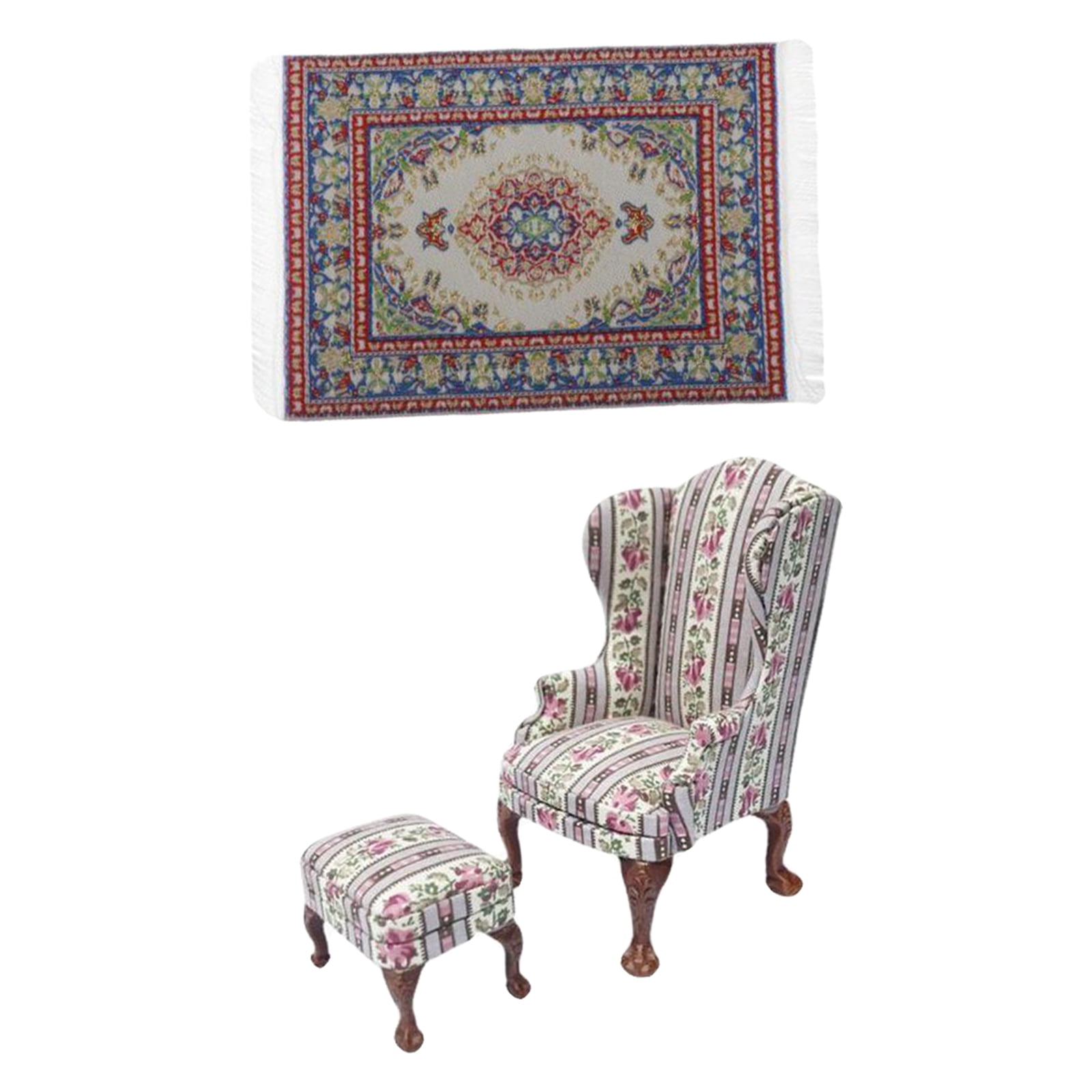 1 12 Dollhouse Upholstered Sofa With Embroidery Rugs Mat Furniture Set Toys Walmart Canada
